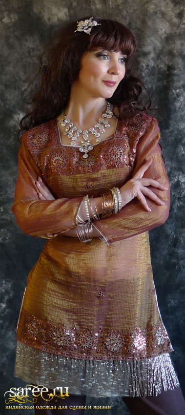 Индийская туника бронзового цвета с брючками